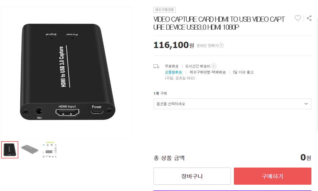 VIDEO CAPTURE CARD HDMI TO USB VIDEO CAPTURE DEVICE USB 3.0 HDMI 1080P라는 제품을 구매하였습니다.
