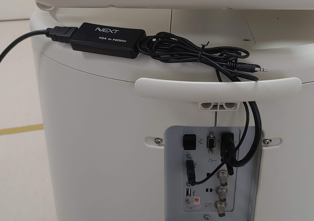 이제 본격적으로 설치를 해보도록 하겠습니다. 먼저 NEXT의 VGA To HDMI 사용하여 초음파 기기의 입력을 VGA 단자에서 HDMI로 변환해주었습니다.