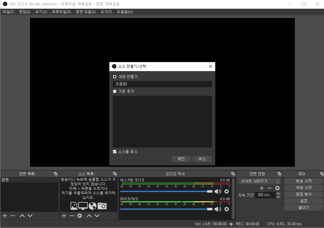 프로그램은 공식홈페이지 (https://obsproject.com/ko)에서 다운로드 가능합니다.