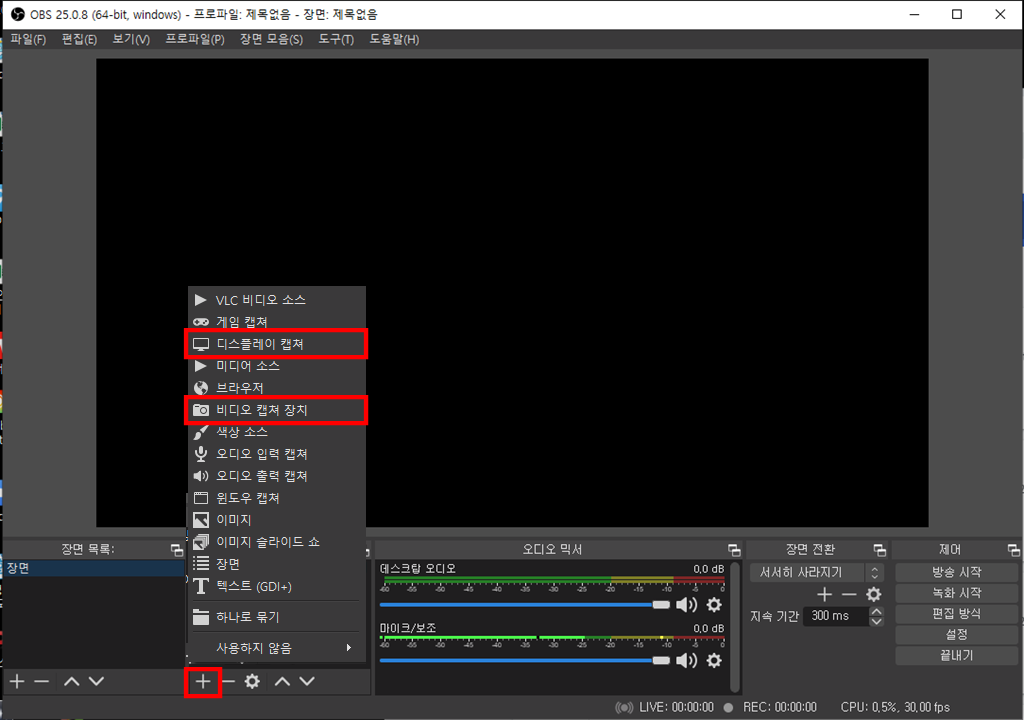 이제 공식홈페이지에 받은 프로그램을 실행합니다. "디스플레이 캡처"를 선택하면 자신의 PC 화면이 그대로 출력됩니다. 저는 초음파 기기에서 신호를 입력받을 예정이니 "비디오 캡처 장치"를 선택하였습니다.