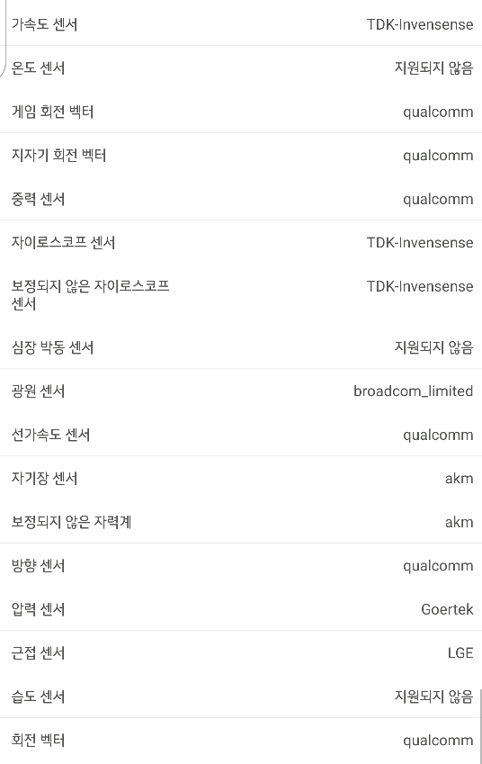 센서의 경우 온도 센서와 심장 박동 센서를 제외하고 대부분의 센서를 지원하는 것으로 파악 됩니다.