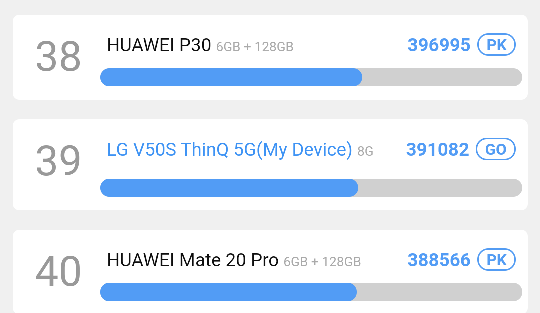 29위에 LG V50 ThinQ가 있는 것을 확인 할수 있었습니다.