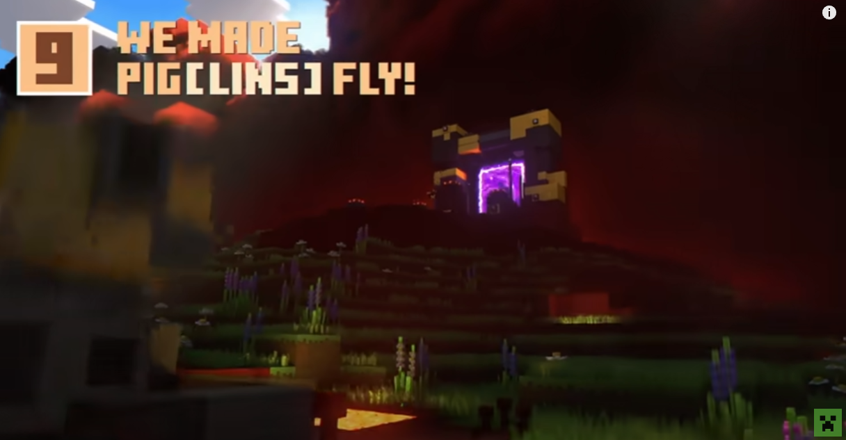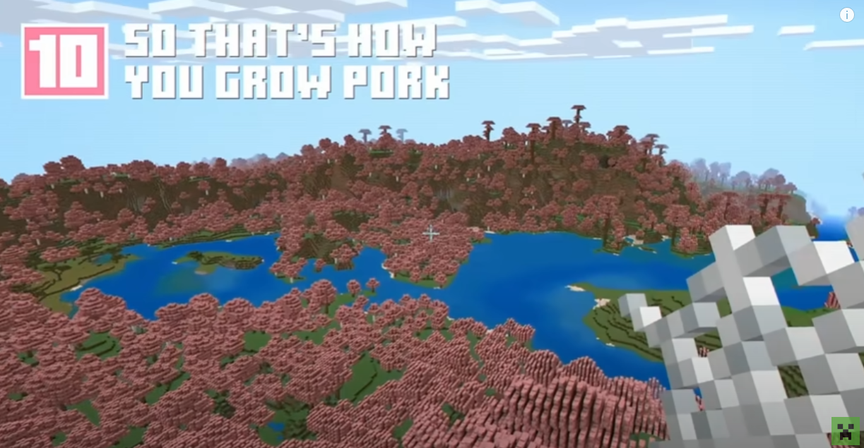 - 개발자들이 공개한 마인크래프트는 돼지로 만들어진 벚꽃 나무를 포함하고 있었다.