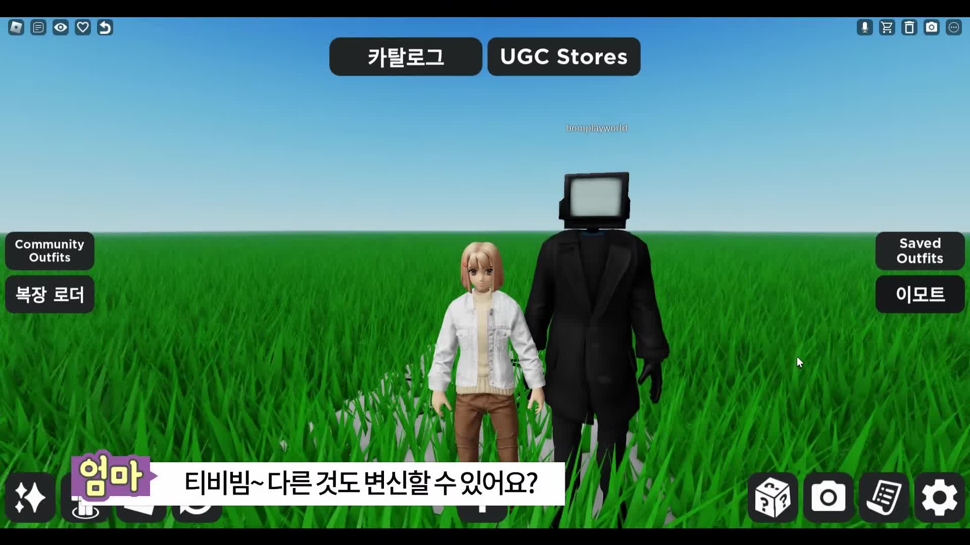 2. 카탈로그 아바타 생소기를 소개하는 티비맨3. 캐릭터 꾸미기와 저장 기능에 대해 설명