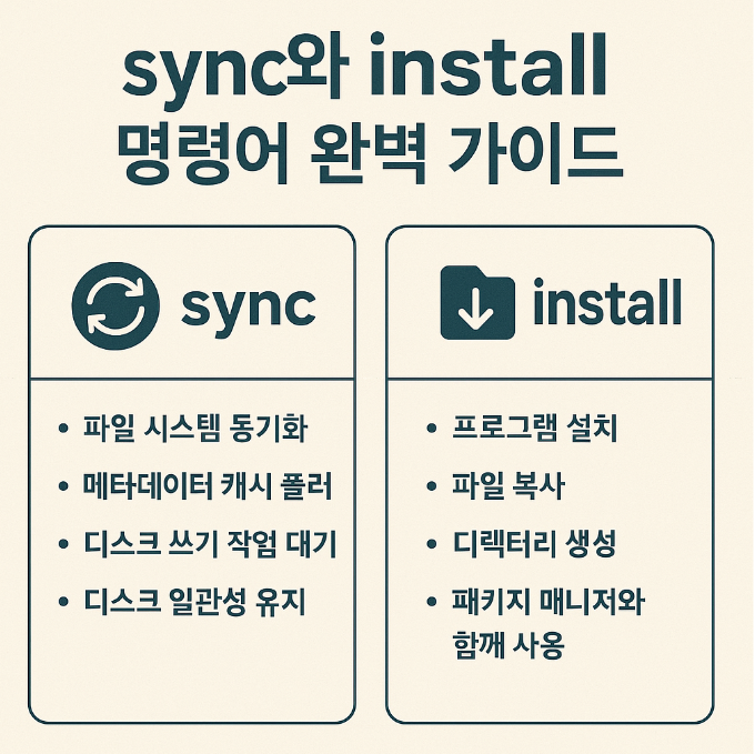 파일 조작 명령어: sync와 install 명령어 완벽 가이드