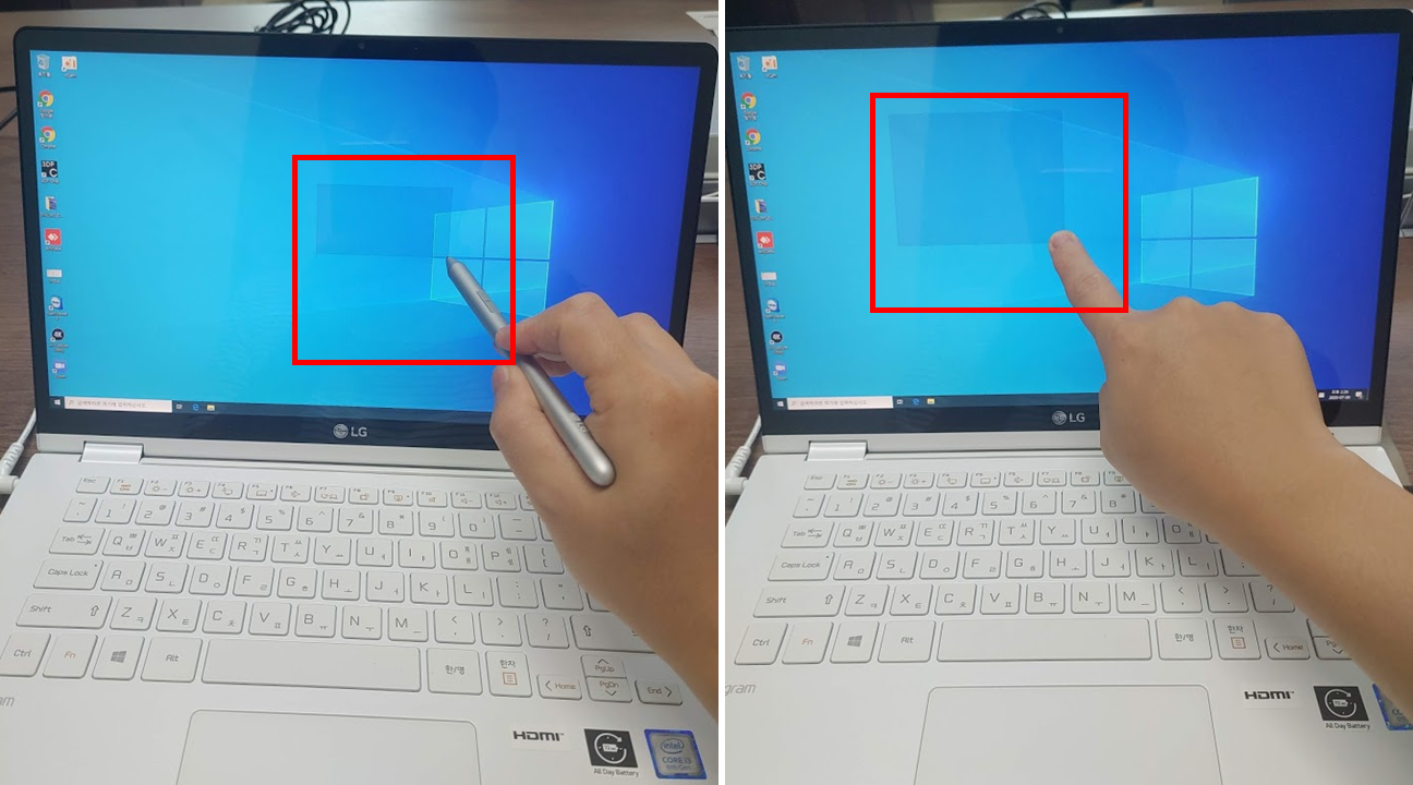 삼성 노트북의 경우 화면 패널이 펜뿐만 아니라 터치도 가능해서 혹시나 하는 마음에 손으로 터치가 되는지 확인해보았습니다. 역시나 터치가 가능합니다.
