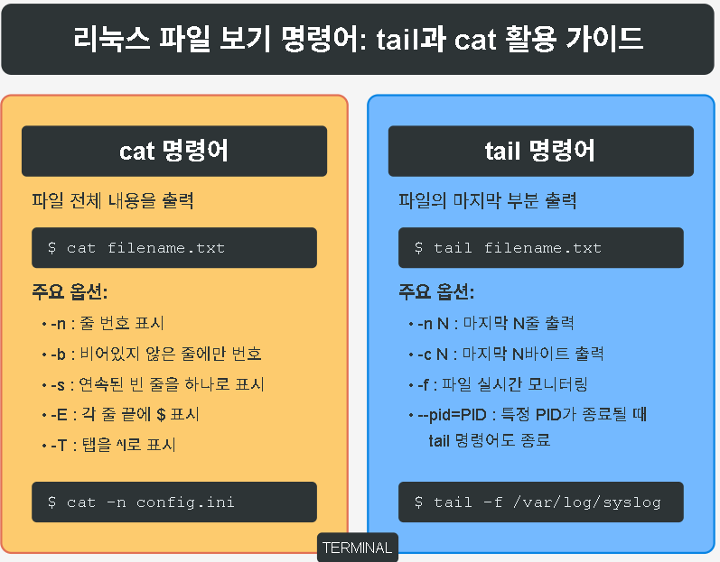 리눅스 파일 보기 명령어: tail과 cat 활용 가이드