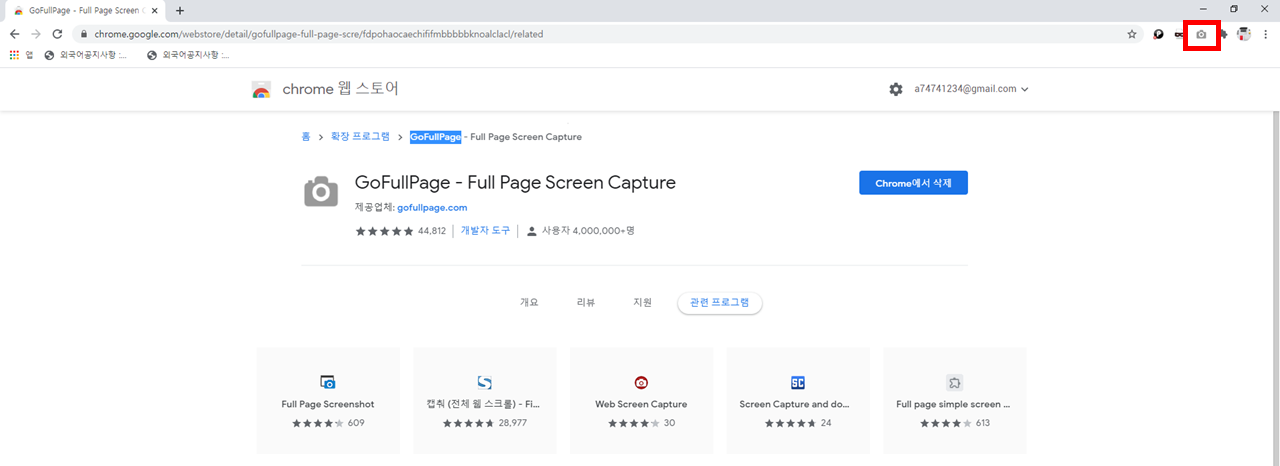 크롬 웹스토어 GoFullPage 검색