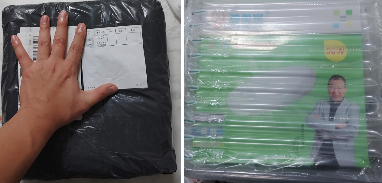 알리익스프레스(AliExpress)에서 아래 처럼 양호한 상태로 배송이 왔습니다. 저의 손바닥이 남자로 작은 편인데, 작은 크기의 50W라고 하니 처음에는 약간? 괜찮을까 하는 생각이 있었습니다.