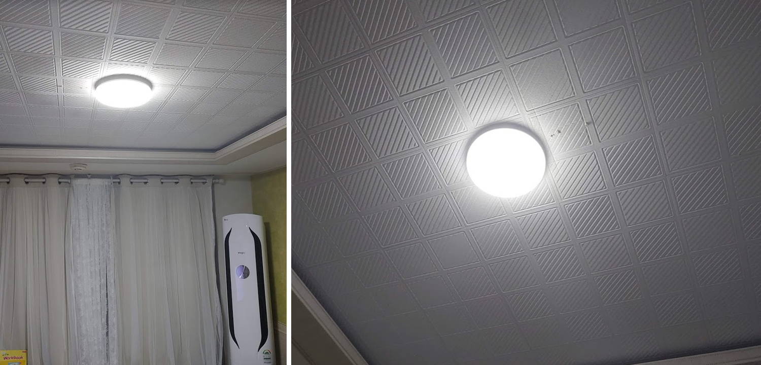 많은 기대를하고 전원을 연결했습니다. 혹시나 동작을 안 하거나? 다른 불상사가 생길까 봐 살짝 긴장한 마음으로 전원을 연결하였고, 잘 동작했습니다. 20W 전구 4개를 사용한 것보다 더 환했습니다. 전기세도 작게 나갈 것을 생각하니 마음이 뿌듯합니다.
