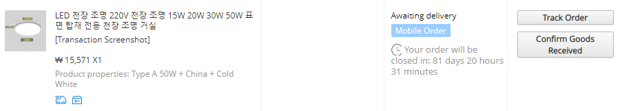 알리익스프레스(AliExpress)를 통해서 중국산 LED 전등을 15,000원 주고 구매를 했습니다. 사실 국산 50W 짜리도 약 22,000원 정도하니 3/1 정도가 저렴합니다.