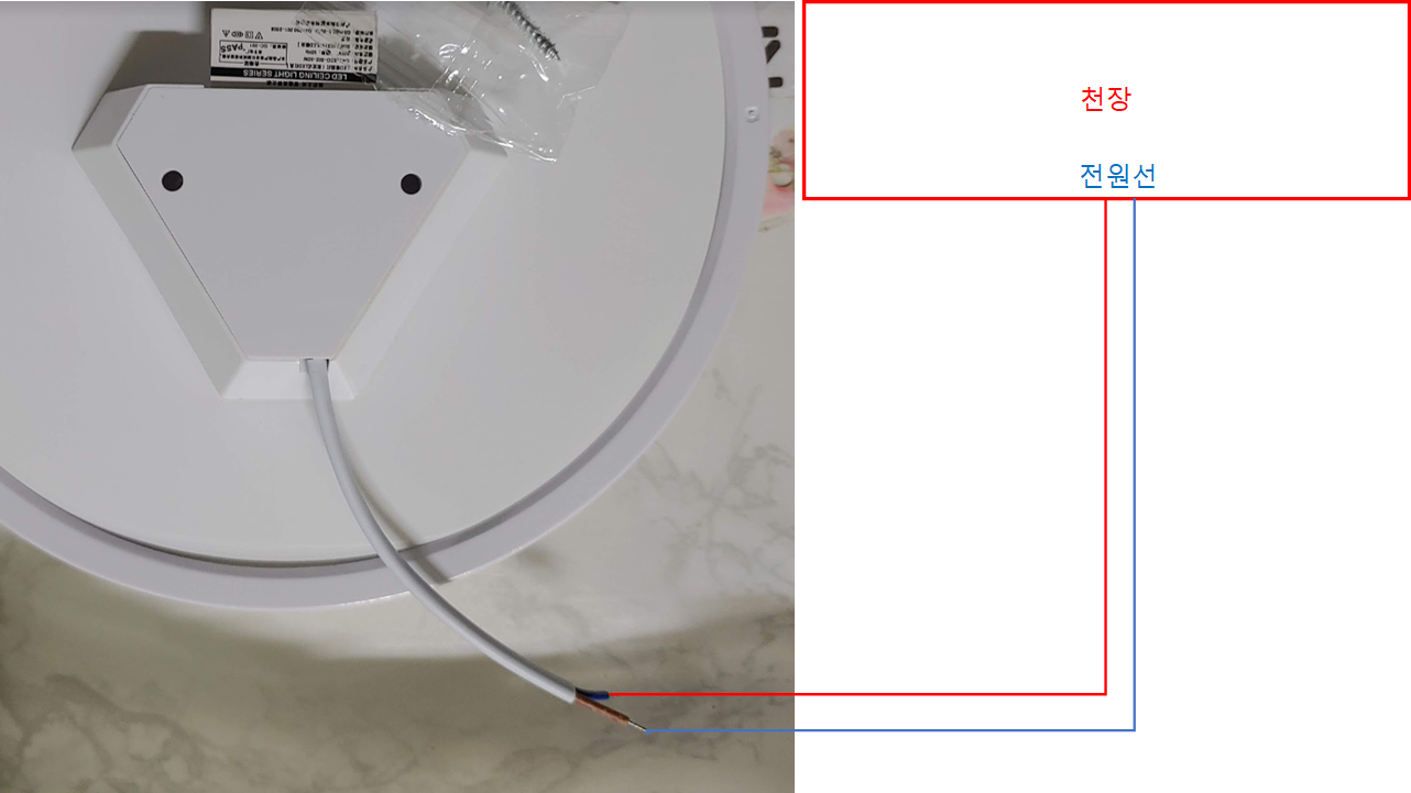 연결하는 방법은 전장에서 나오는 전원선을 전등에 연결해주기만 하면 모든 설치 과정이 끝납니다. 왜 쉬운 설치라고 광고하는지 알겠습니다. 설치하는 모든 과정을 포함해서 10분이 걸리지 않은 듯했습니다.