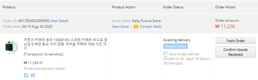 오늘은 실제 촬영이 가능한 만원 짜리 어린이 장난감을 소개 해드릴려고 합니다. 알리익스프레스(AliExpress)에서 11,236원에 어린이 장난감 카메라를 구매 했습니다.