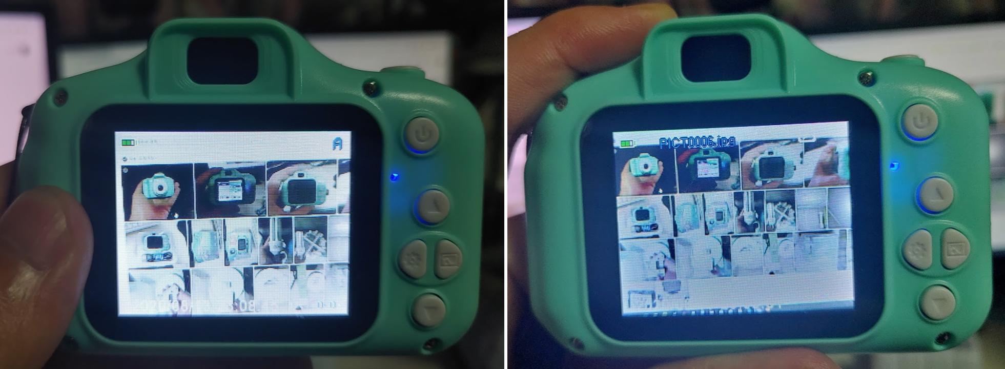 아래는 카메라의 대략적인 사용 용도 입니다. 사진 촬영, 전원, 설정, 상하단, 사진 보기 버튼과 충전 SD 카드 단자가 있습니다. SD 카드의 경우 구매 시 별로도 동봉되어 있지 않으니 미리 구매를 하셔야 합니다. 저는 집에서 남는 SD카드 32G가 하나 있어서 연결해주니 잘 인식하였습니다.