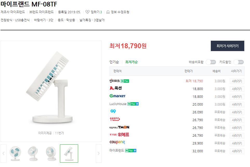 인터넷 네이버 쇼핑 최저가가 18,790원인 선풍기 마이프랜드 선풍기를 9900원에 득템하여 공유 합니다.