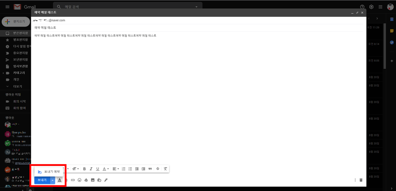 2020/08/21 - [소프트웨어/사무업무] - Gmail(지메일) 예약 메일 보내는 방법 알아보기 Gmail(지메일) 예약 메일 보내는 방법 알아보기 사무업무를 진행하다 보면 가끔 저녁 늦게 메일을 보내는 것 자체�