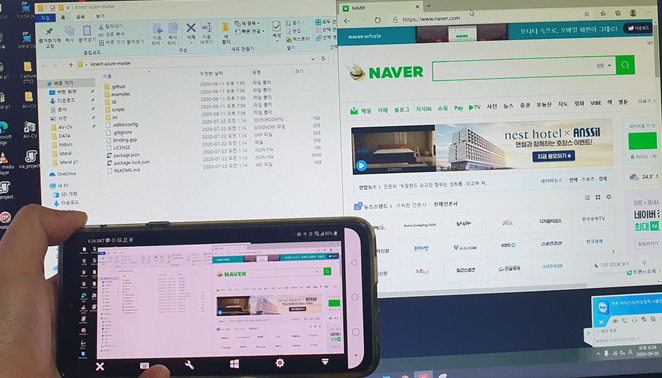 아래처럼 스마트폰으로 폴더를 열고, 웹 브라우저를 네이버로 이동해보았습니다. 이상 없이 잘 동작하는 것을 확인할 수 있었습니다.