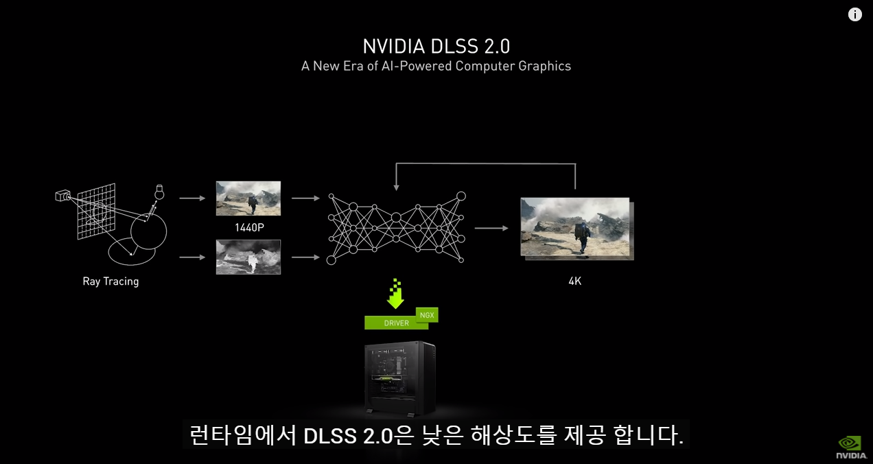 10년동안 가장 큰 혁신 중 하나가 DLSS로 저품질의 해상도에서 인공지능 기술을 활용해서 고생해도의 프레임을 제공하는 것이 눈에 들어왔습니다.