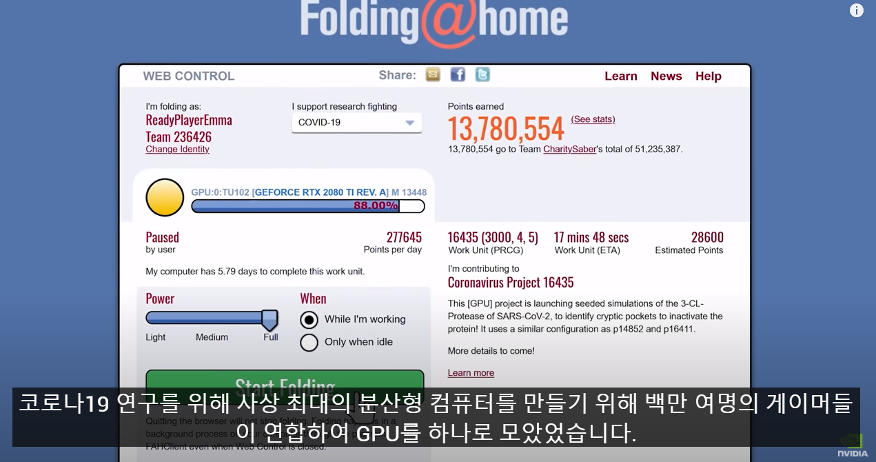 기계학습과 가상화폐등의 발전으로 NVIDA의 회사 가치가 점점 높아 지고 있습니다. 최근에는 전세계적으로 이슈가 되는 코로나 19 부터 인공지능까지 지포스 (GeForce) 그래픽카드의 사용 영역이 점점 증가 되고 있다는 것을 느낄수 있었습니다. 소개 영상을 보니 최신 학술 영상인지 그래픽카드 소개 영상인지 하는 생각이 들정도 였습니다.