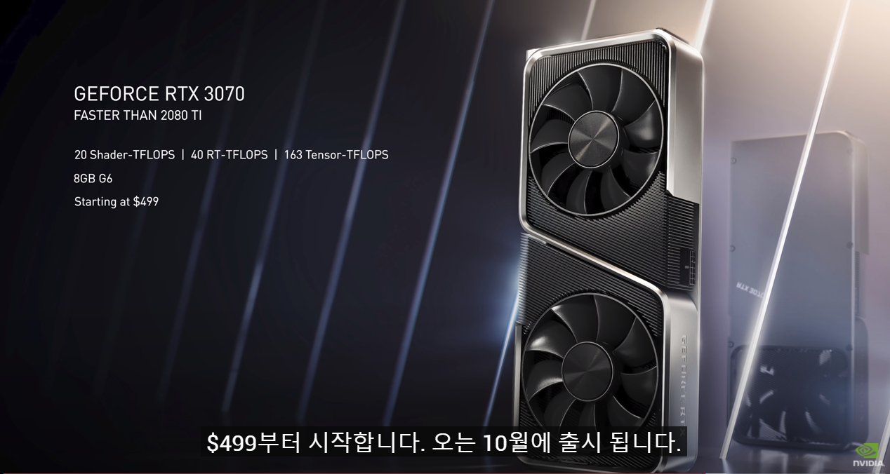 이번에는 신규 제품으로 GeForce RTX 30 시리즈를 내놓았습니다. 3종의 고성능 그래픽 카드를 선보였습니다. 성능 수준과 가격이 궁굼하신 분들은 맨하단을 먼저 보시면 됩니다.
