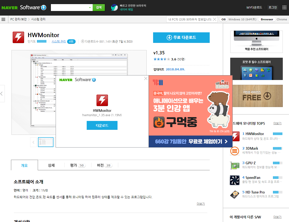 간단하지만 편리한 하드웨어 정보로 나의 컴퓨터를 스마트하게 관리해보시기 바랍니다.
