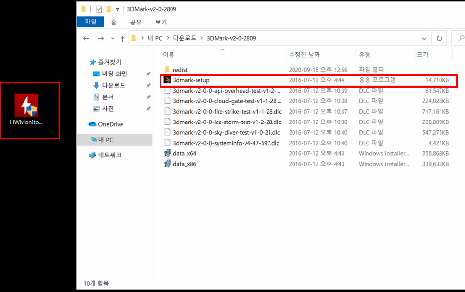 3DMark는 다운로드 받고 압축 파일 해제 후 인스톨까지 진행해주셔야 합니다.