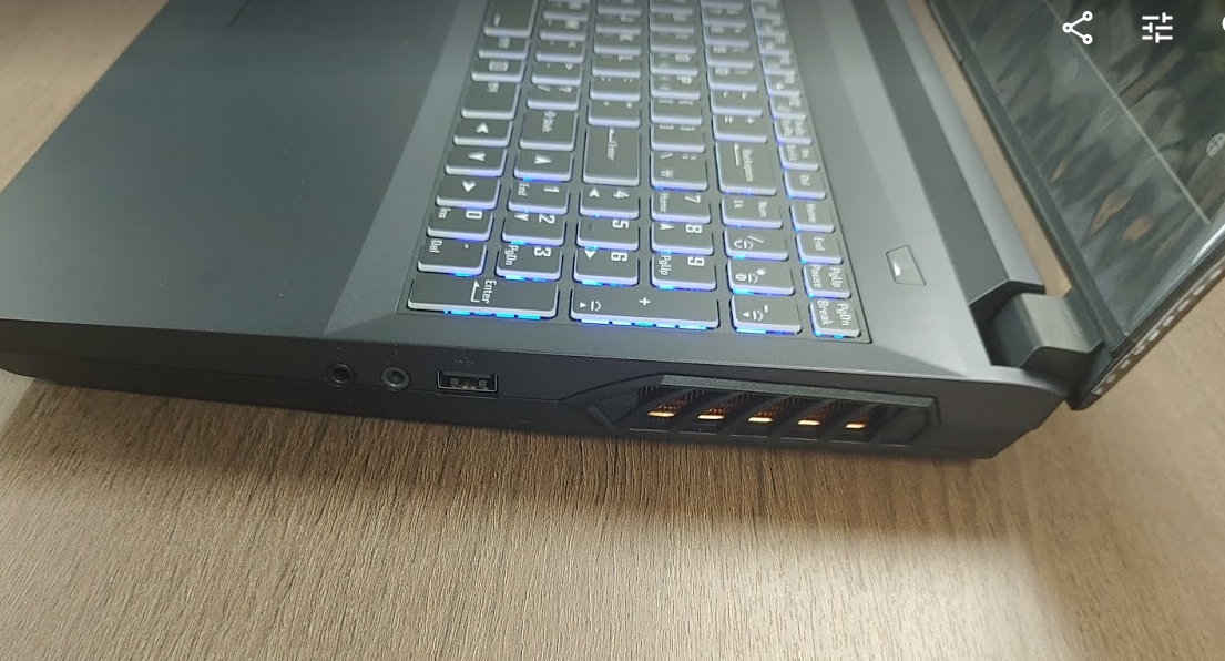 노트북 오른쪽 측면에는 환풍구와 USB Port, 마이크, 스피커 연결잭을 연결이 가능합니다.