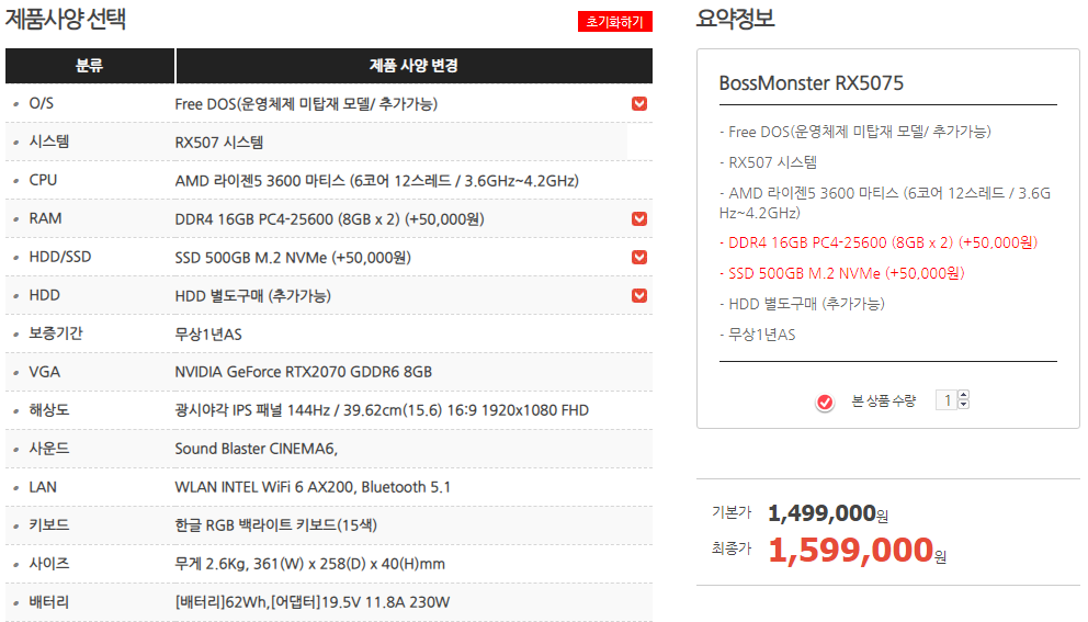 그러던 중 NVIDIA GeForce RTX2070 GDDR6 8GB 그래픽 카드를 탑재한 보스몬스터 RX507 시리즈를 보게 되었습니다.