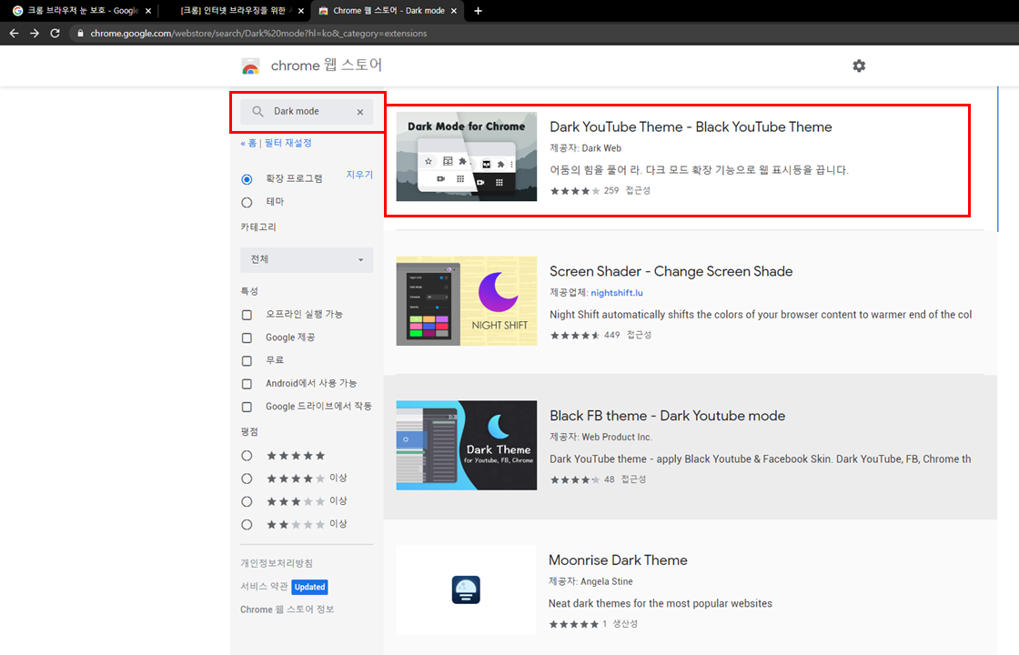 그럼 Dark YouTube Theme - Black YouTube Theme 확장 프로그램을 선택 합니다.