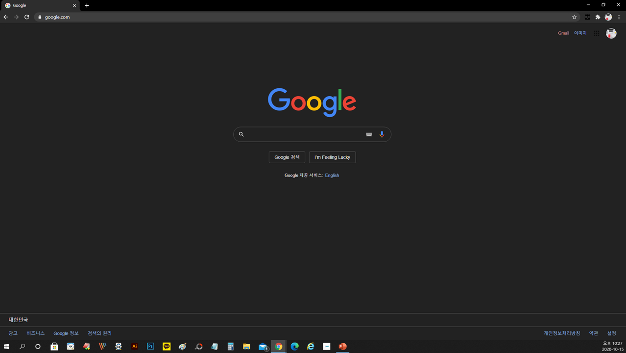 활성화를 하셨다면 새창을 열어봅니다. Google 다크모드로 변환되어 있는 것을 확인 할수 있습니다.