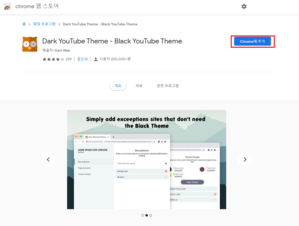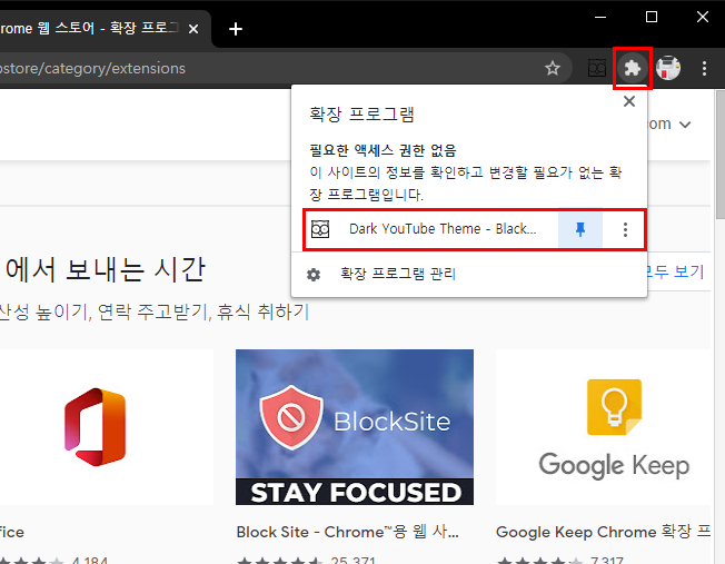 그럼 Dark YouTube Theme - Black YouTube Theme 확장 프로그램을 선택 합니다.