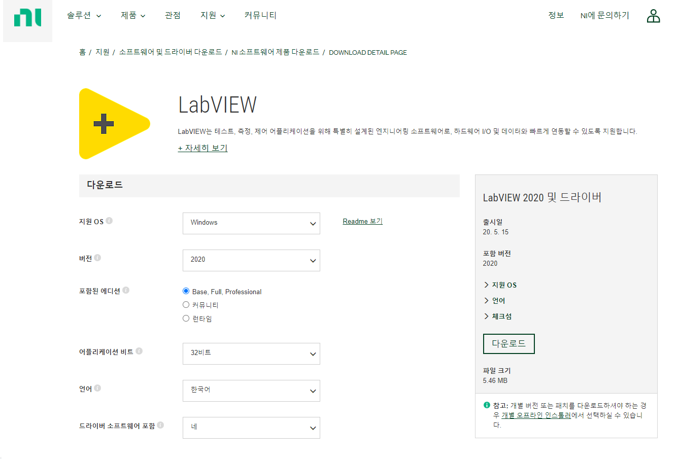 www.ni.com/ko-kr/support/downloads/software-products/download.labview.html#346252