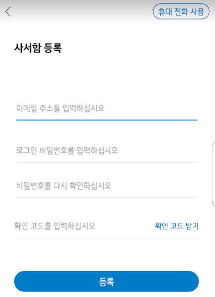 로그인은 이메일 주소가 필요하고 회원가입 후 확인 코드를 입력하면 회원가입이 완료됩니다.