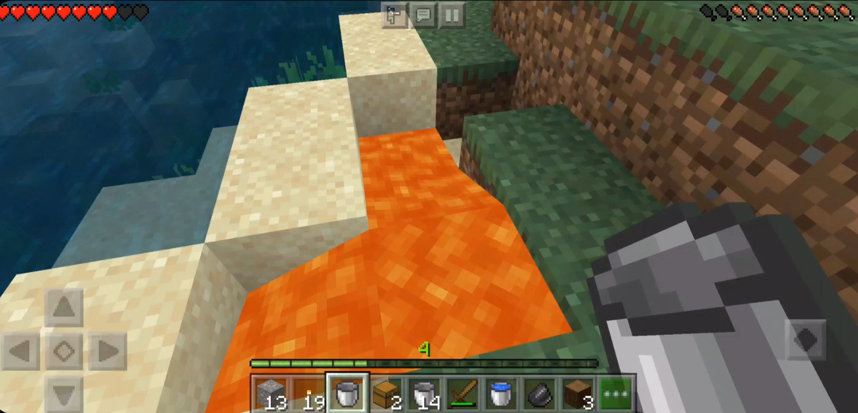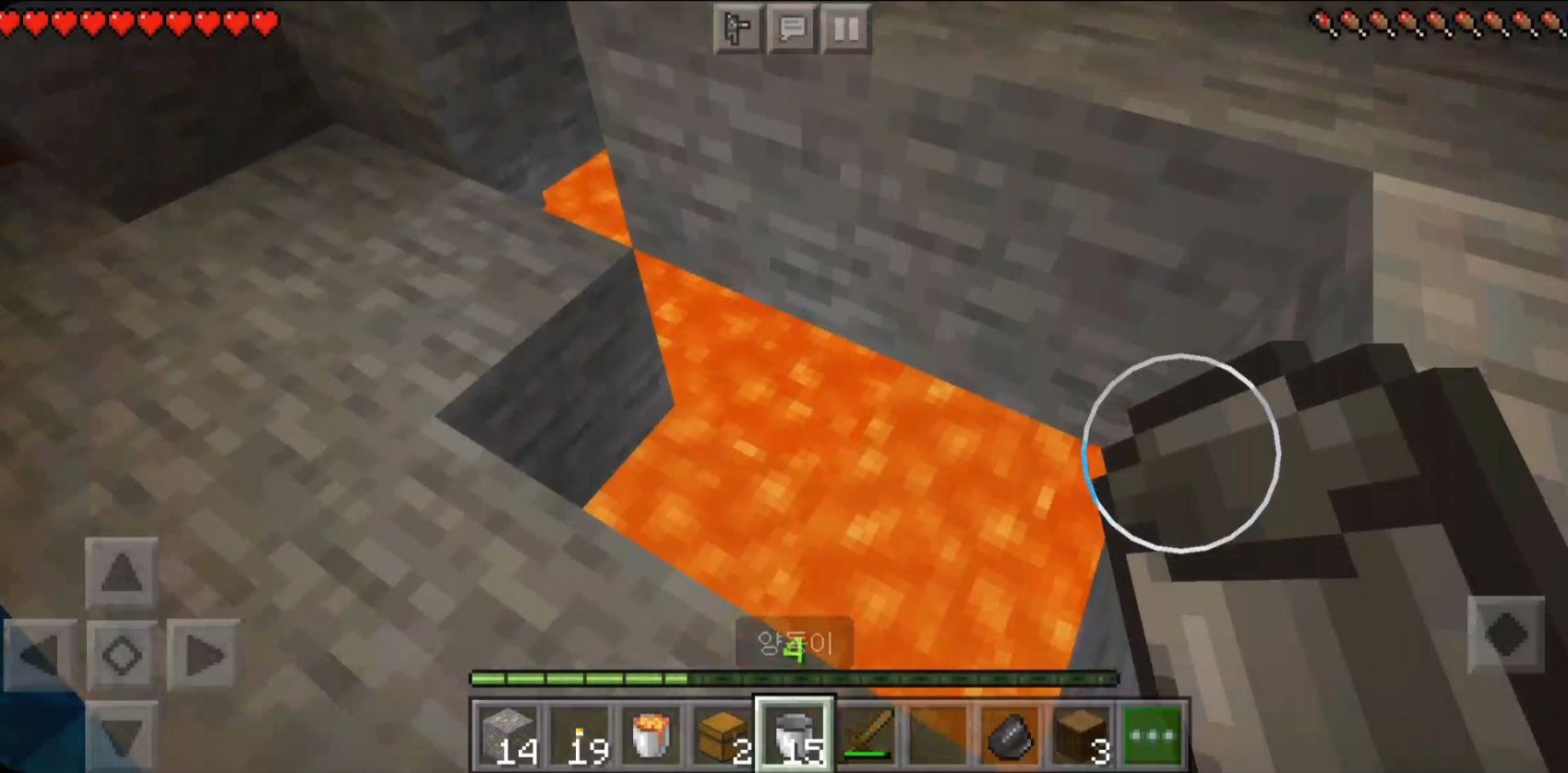 먼저 양동이로 용암을 담습니다.